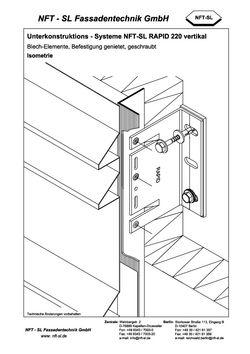 Unterkonstruktions - Systeme NFT-SL RAPID 220 vertikal - Blech-Elemente, Befestigung genietet, geschraubt - Isometrie