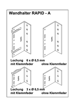Wandhalter RAPID-A 6 x 6,5 u. 3 x 6,5 - mit Klemmfeder u. ohne Klemmfeder