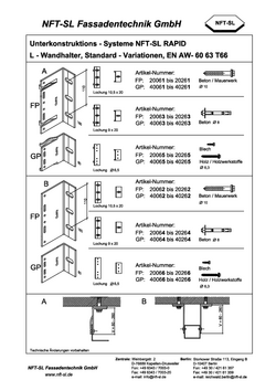 Unterkonstruktions - Systeme NFT-SL RAPID L - Wandhalter, Standard - Variationen, EN AW- 60 63 T66